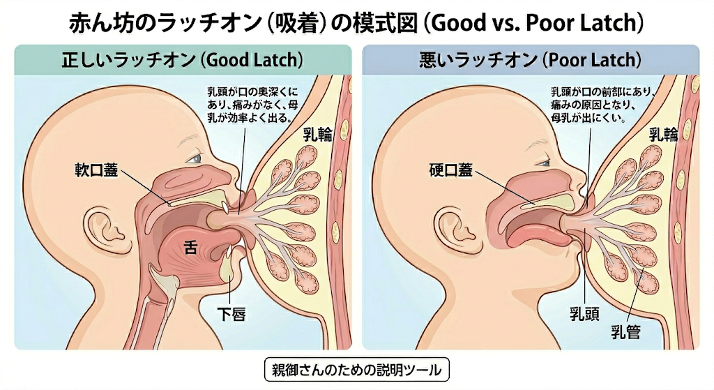 1. 人生最初の「お口の筋トレ」 おっぱいを一生懸命に吸う動作は、赤ちゃんにとって初めての「お口の筋肉トレーニング」です。この最初のアゴや舌の使い方が、将来の正しい歯並びや、上手に食べ物を食べる力の基礎(口腔機能の発達)を作ります。