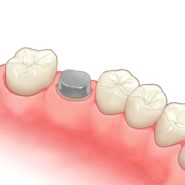 - 色が金属的で、天然歯に比べて目立ってしまうことがあるため、前歯などには使用が難しい場合があります。