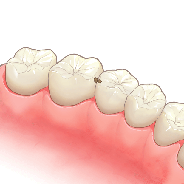 歯の表面のエナメル質が脱灰している段階であり、フッ素塗布やシーラントなどで治療します。