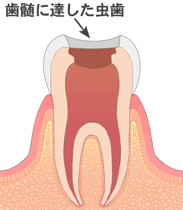 虫歯が深く神経を侵している段階で、歯髄炎や歯周病を引き起こす可能性があります。